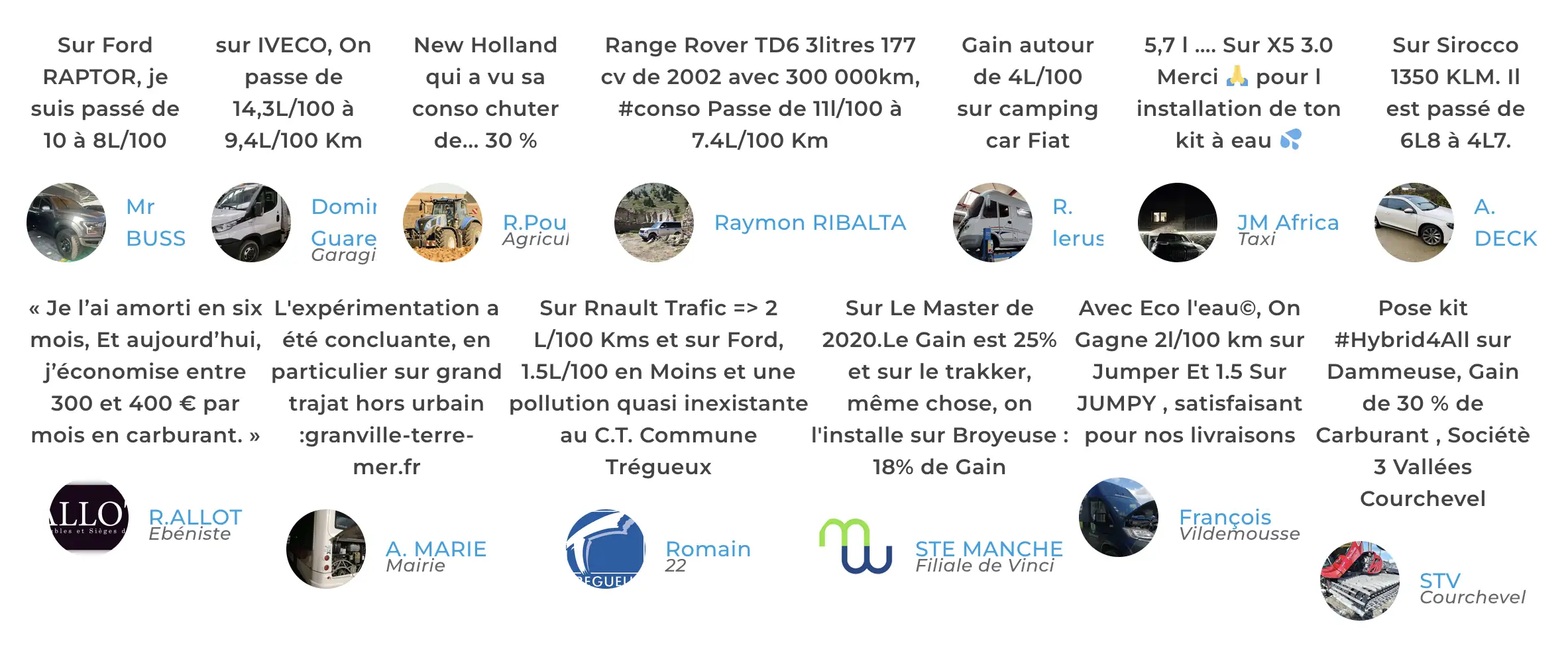 Nous étions curieux de découvrir ce moteur à eau dont nous avions entendu parler. Nous constatons une division par 2 de la consommation de carburant, et Nos clients nous félicitent de l’abaissement des rejets polluants », se réjouissent les cogérants. …🚘💦